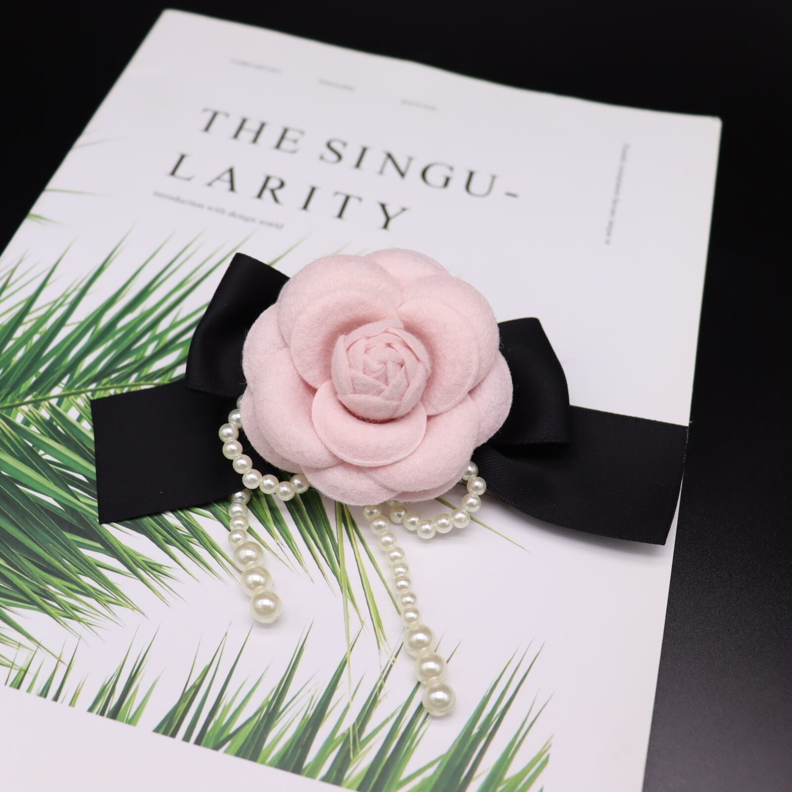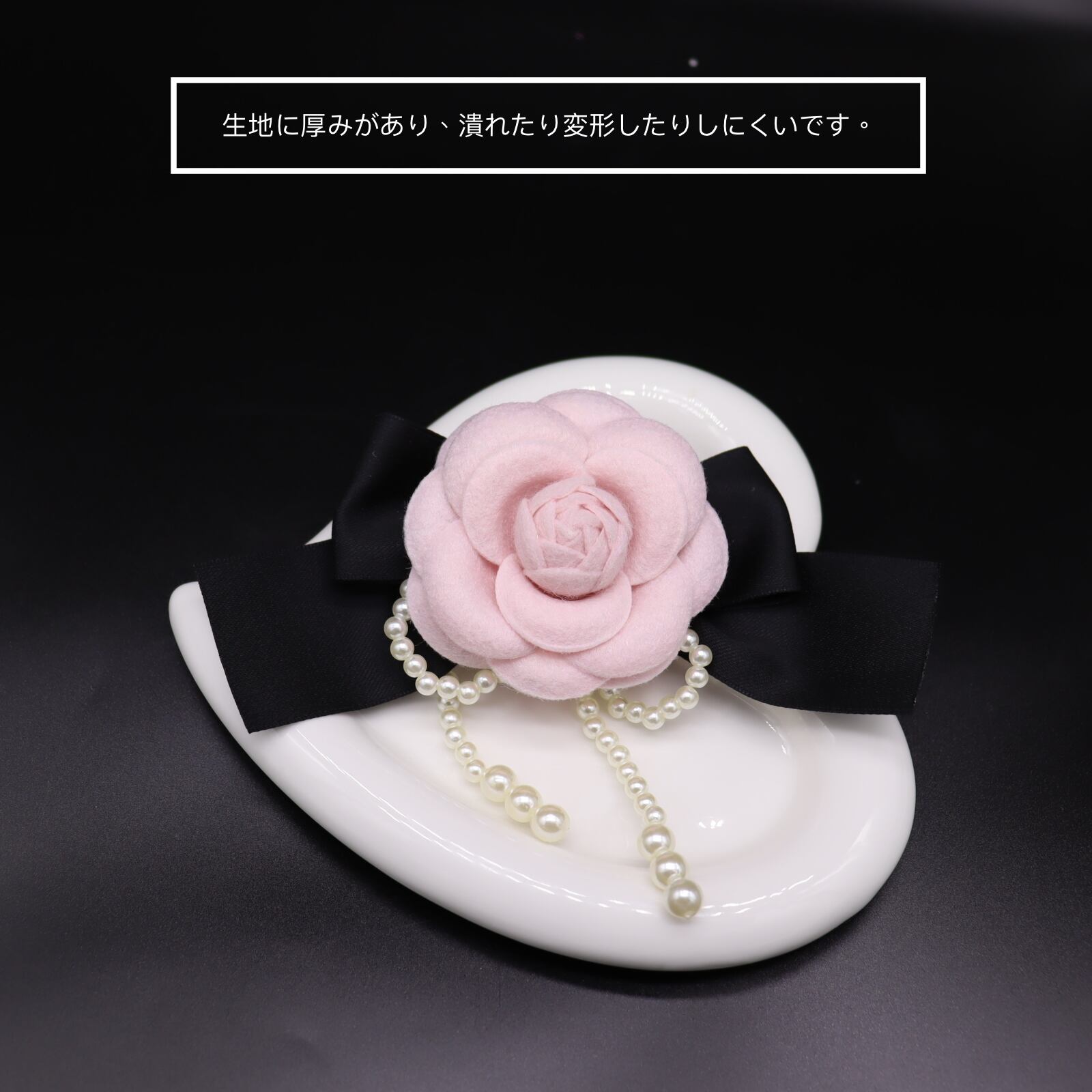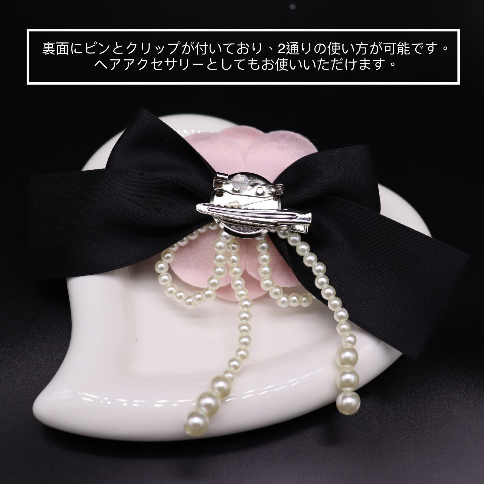★色:ホワイト真珠、ピンク花、黒リボン