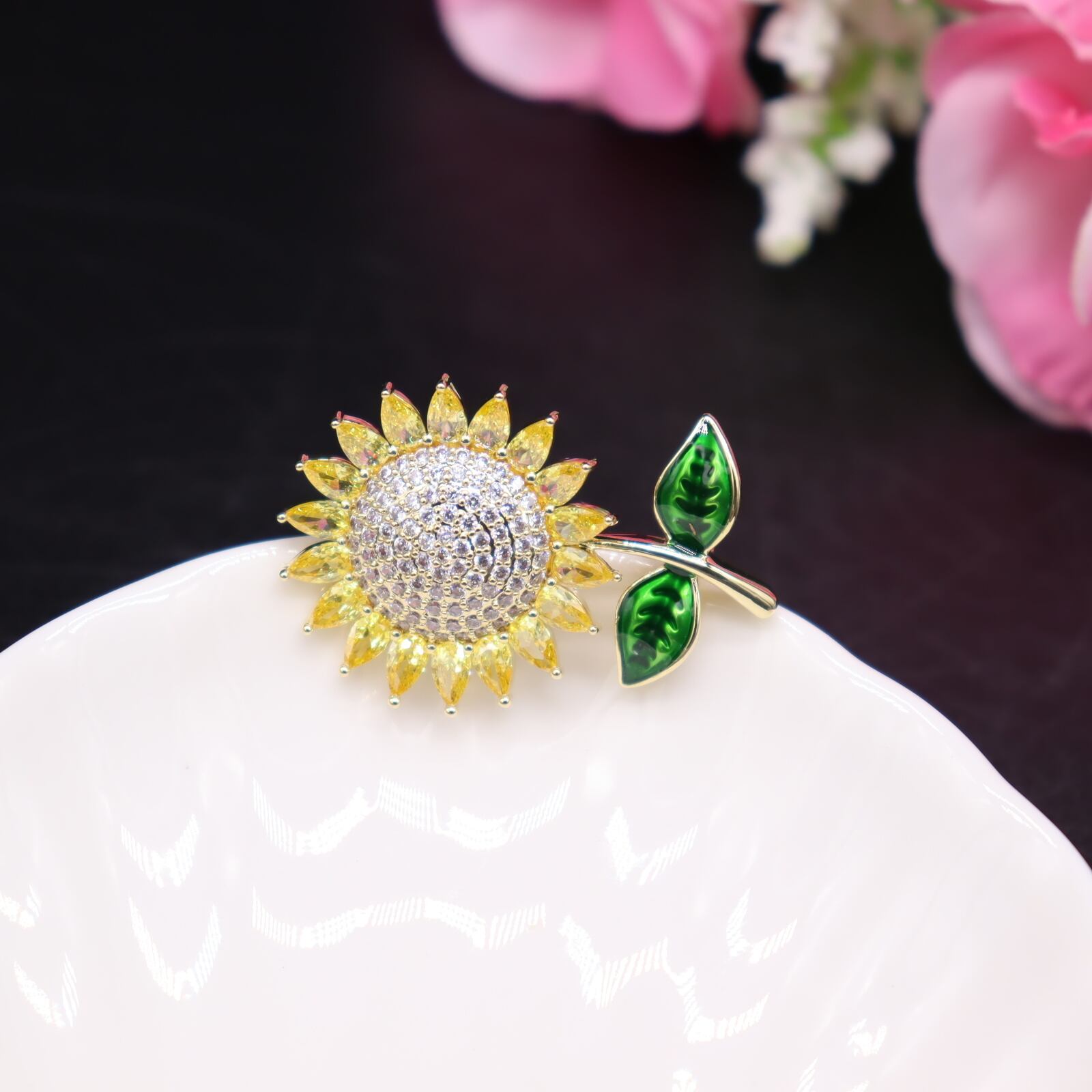 ★このジルコンひまわりブローチは、力強くも優雅なひまわりのデザインが特徴で、あなたの装いに華を添えます。結婚式や卒業式、入学式など、大切な瞬間を美しく演出するアイテムとして最適です!