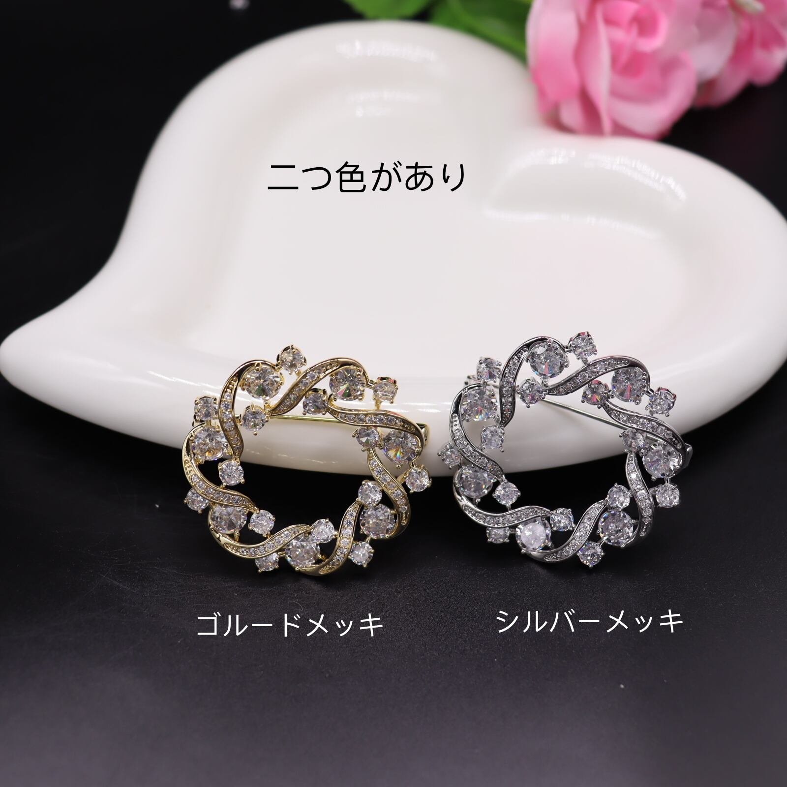★独特な美しいリボン花のデザインで、清新感アップの大人気ブローチです。華やかさとエレガントさが融合した存在感あるアイテムです。
