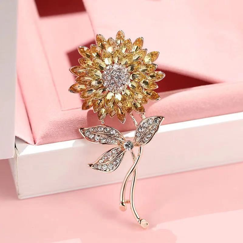 ★独特な美しいひまわりのデザインで、清新感アップの大人気ブローチです。明るく華やかな印象を与え、存在感抜群です。