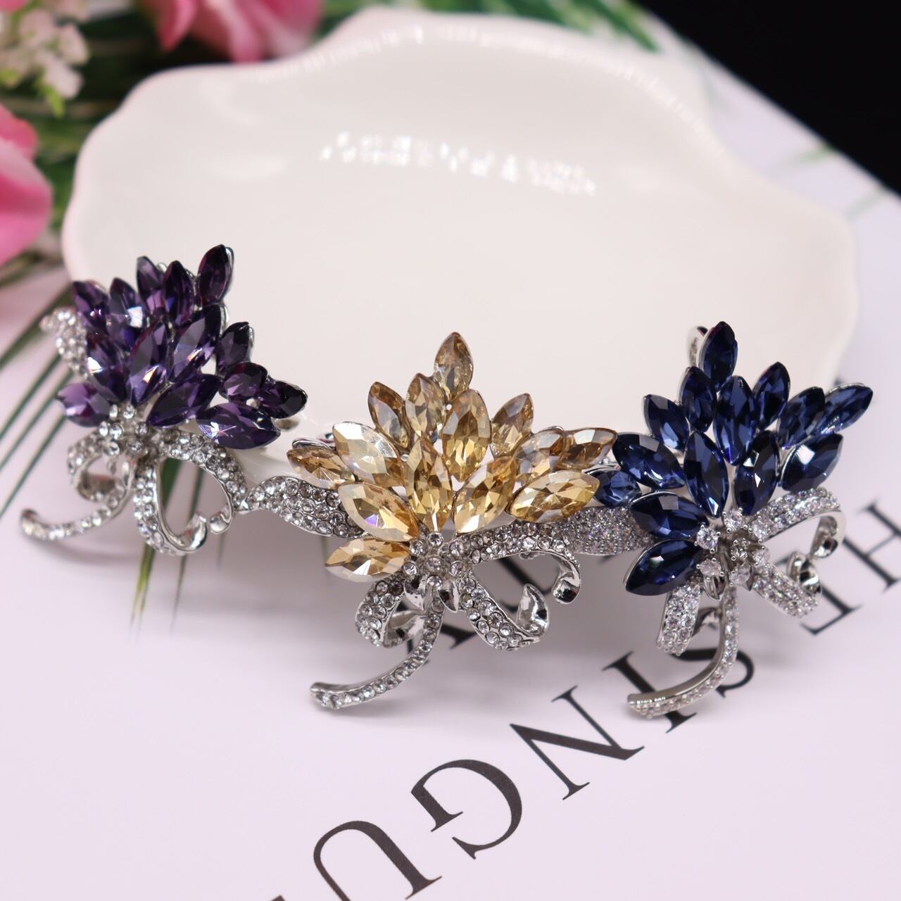 ★商品名: ラインストーンブローチダイモンドブルー花コサージュ胸飾り