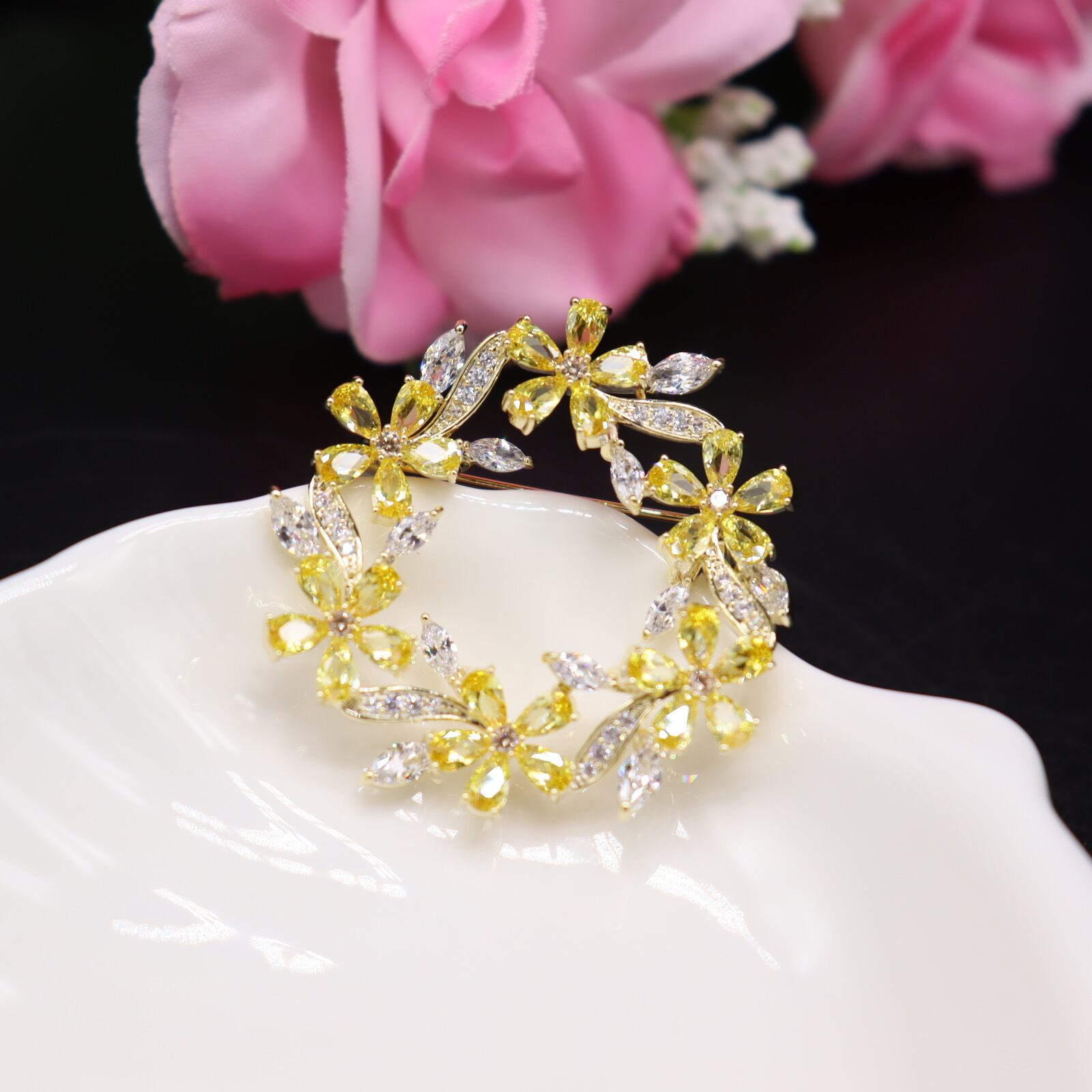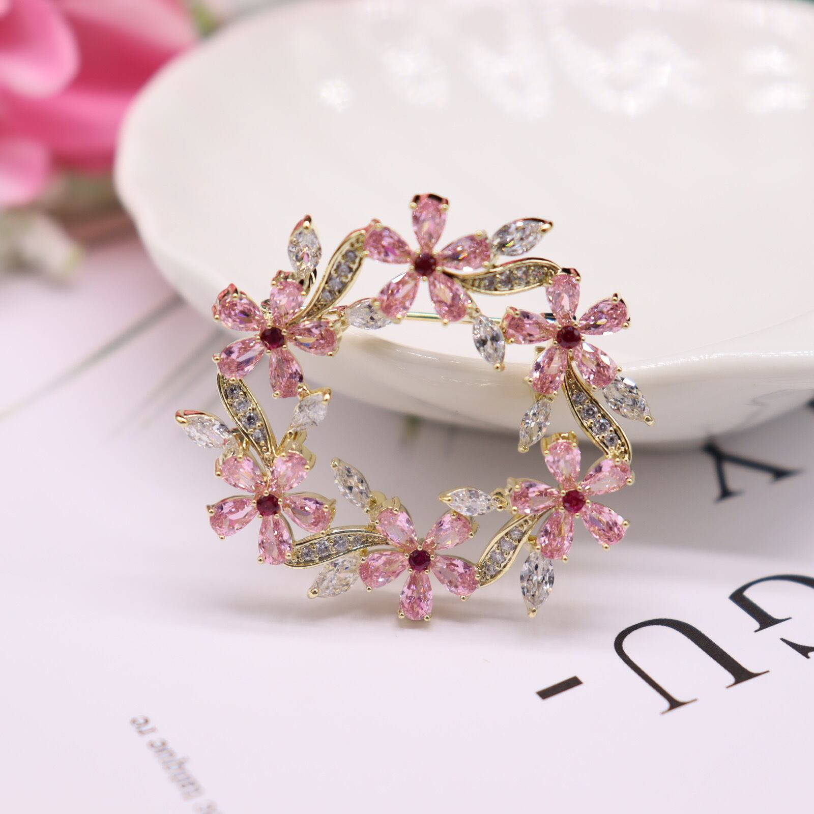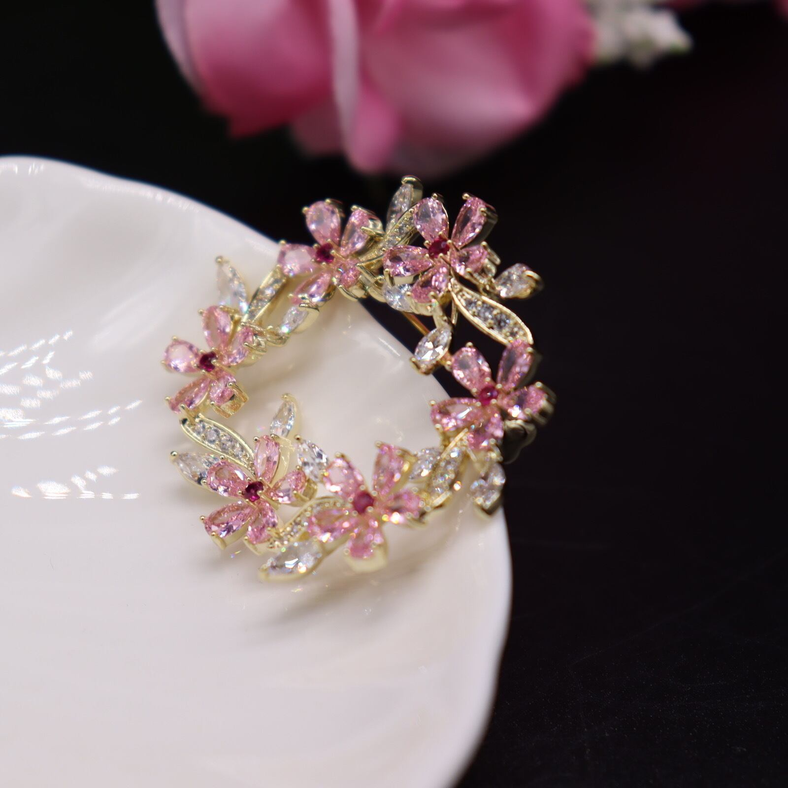 ★贅沢に使用されたCZジルコンを用いた桜花モチーフのブローチが、特別な日の装いを美しく演出します。その輝きが、あなたのスタイルにエレガントさを加え、周囲の視線を引き寄せます。