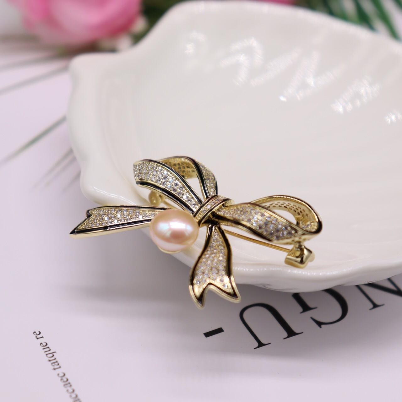 ★美しいリボン花をモチーフにしたこのブローチは、淡水真珠と輝くCZジルコンを贅沢に使用しています。特別な日の装いに華やかさを加え、そのエレガントな輝きがあなたのスタイルを一層引き立て、周囲の視線を集めます。
