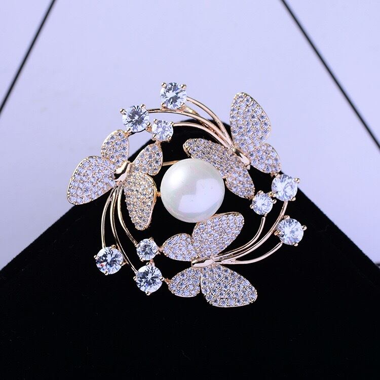 ★真珠とCZジルコンを贅沢に使用した蝶々花モチーフのブローチが、特別な日の装いを一層華やかに引き立てます。その洗練された輝きが、あなたのスタイルを際立たせ、周囲の視線を集めます。